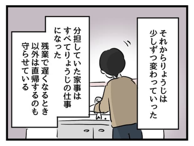 家事は全て夫りょうじさんがやることになり、監視されているため仕事が終わったら直帰するようになったそう。全てキリコさんの思い通りになっているようです。りょうじさんも不満が溜まるであろうに、言われた通りこなしているようですね。