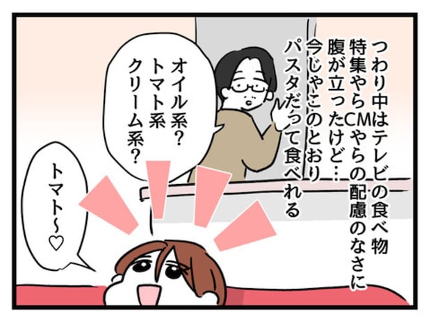 つわり中は食べ物の特集やCMにさえ配慮が足りないと腹を立てていたキリコさん。かなりの自己中心的な考えですね。