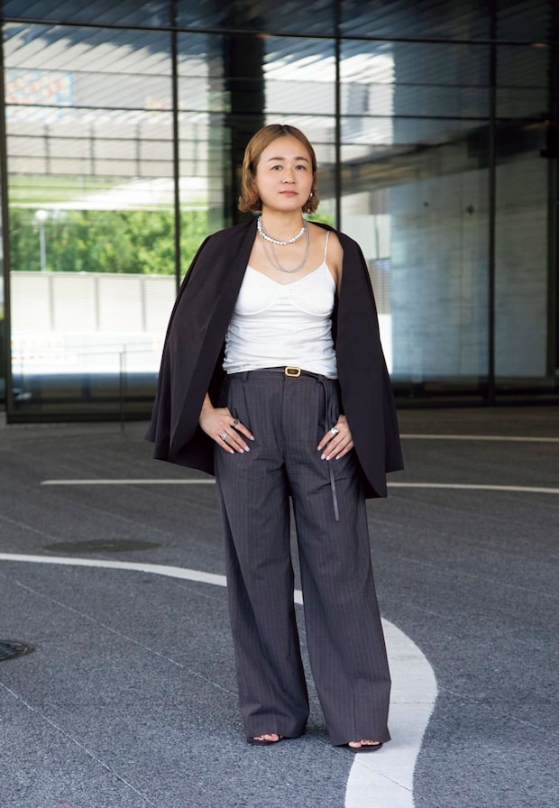 「街で肌見せをするときはなるべくキレイめにまとめるように意識。ジャケットの中からランジェリーっぽいデザインを見せるのが気に入っています」