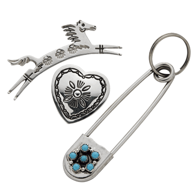 今季はニットやアウターに着けて楽しみたい。ブローチ ホース¥50,600、同 ハート¥38,500、同 キーチェーン¥12,100(全てハルポ/全てユナイテッドアローズ 六本木ヒルズ店)