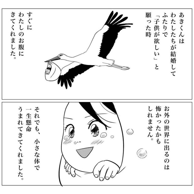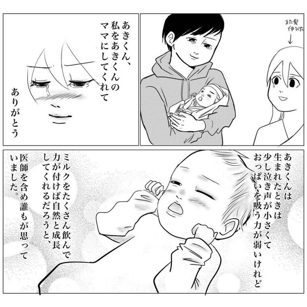 あきくんに障がいがあると知り、激しく落ち込んでいたとき。夫のポジティブな言葉に、S←mangaさんは救われました。「あきくんはあきくん」という言葉から、子どもを1人の人として尊重している気持ちが伝わってきます。