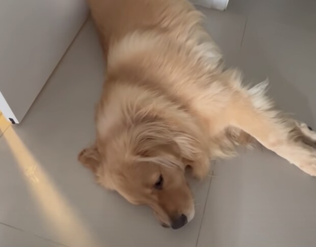 飼い主さんが声をかけても犬さんは爆睡中zzz