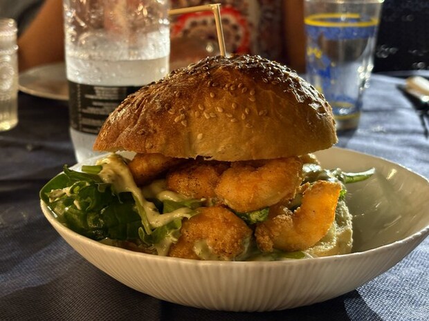 エビが山盛り入ったバーガーは、お腹がはちきれるほど超ボリューミー。