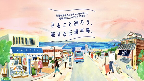 本プロジェクトは、神奈川県が推進する観光推進事業「地域まるごとホテル@三浦半島」に採択された取り組みのひとつ。三浦半島地域の観光地としての魅力を高めることを目的に、各地域が持つ自然や食、歴史、文化といった観光資源と宿泊施設をつなぎ、まち全体で観光客をもてなす新しい観光モデルだ。