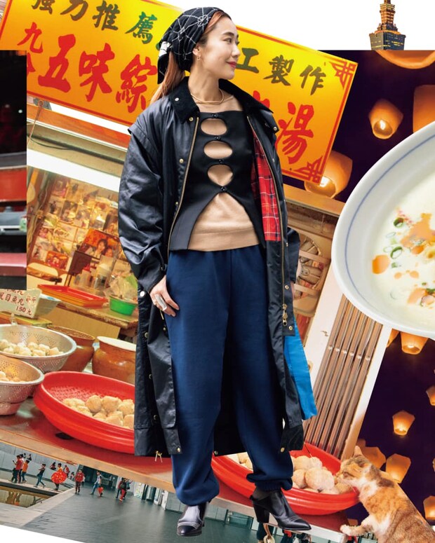 「今の時期の台湾の気候は、日本より少し暖かいくらいのため、アウターはマスト! ただ、日中は気温が上がることが多いので、袖を取り外せてベストにもなるロングコートが活躍する予感! このコートは軽くてコンパクトにまとめられるから、旅行に持っていくのにぴったり」
