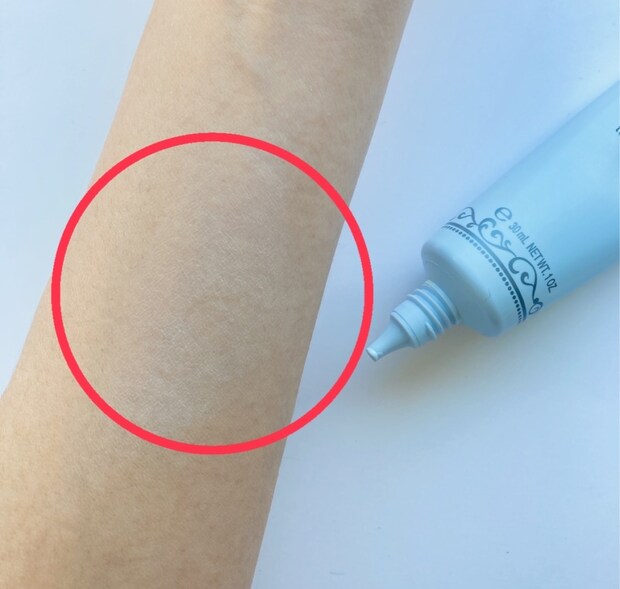赤みと黄味が薄くなっているのが分かりますよね。白くなるというよりも、余計な色みを消してくれるイメージです。