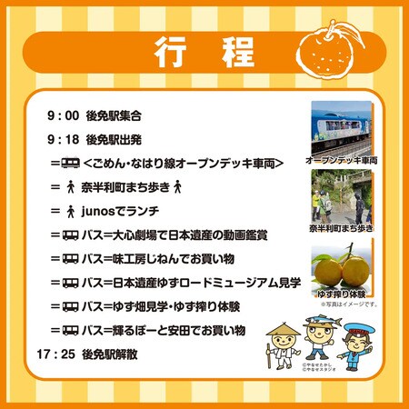 11月9日(日)には、第2弾として、オープンデッキ車両で行く、ゆず香る中芸の日本遺産探訪ツアー「奈半利町・安田町」コースを催行。