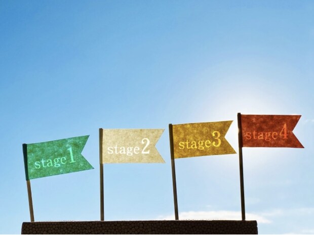 卵巣がんのステージは、腫瘍の広がり具合によって分類されます。ステージⅠ期からⅣ期まであり、数字が大きいほど進行した状態です。一般に、早期(I期・II期)で発見された卵巣がんの予後は良好ですが、進行期(III期・IV期)で発見された場合は予後が厳しくなります。それを示す指標として5年生存率がよく用いられます。以下にステージごとの5年生存率の目安を示します。