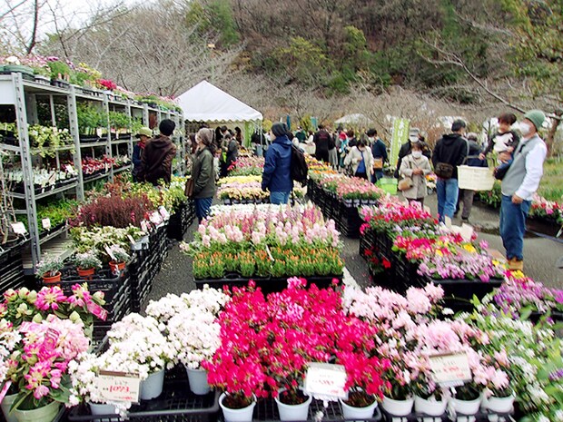 毎回2万人以上が訪れるこのイベントは、愛媛県内の造園業者が中心に出店し、庭木用の樹木300種以上、草花300種以上、計3万点以上の庭木や花苗などが、展示販売されます。