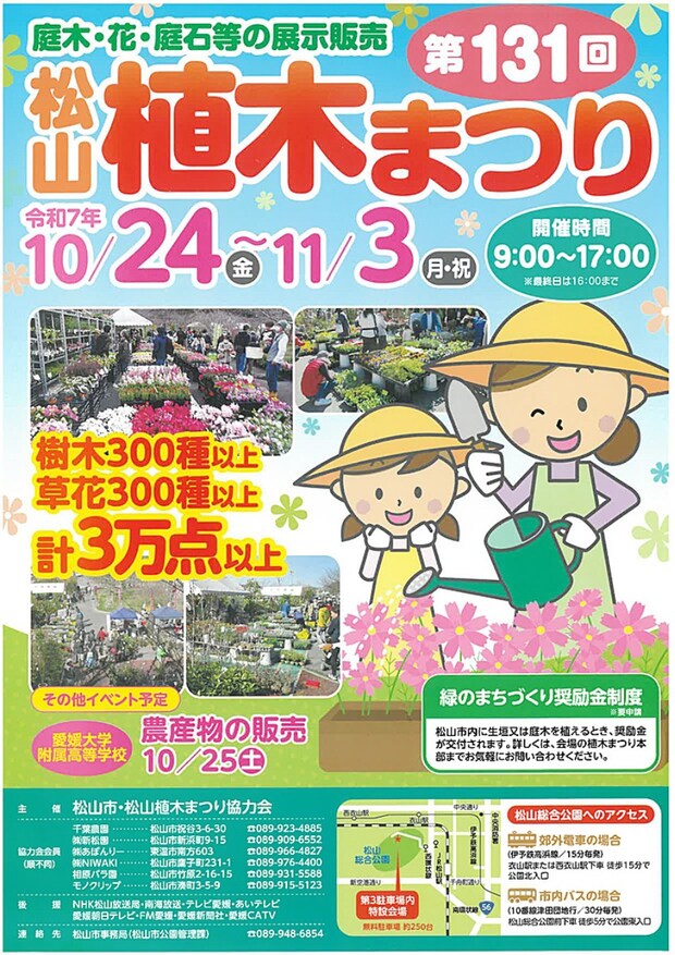 2025年10/24(金)~11/3(月・祝)開催 松山市総合公園に、3万点以上の庭木や草花が集結!