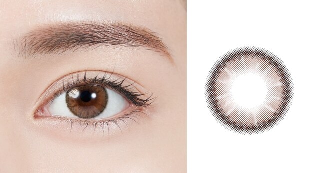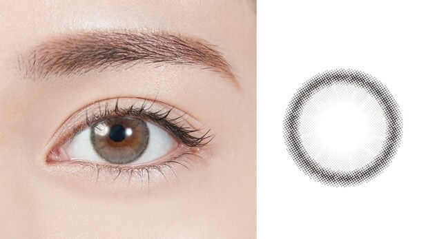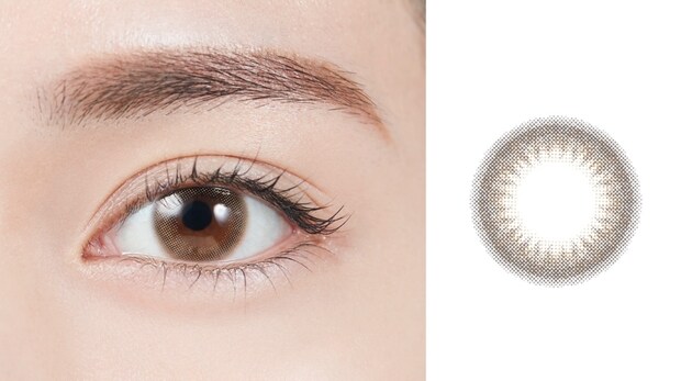 いろいろ使っても結局この色に戻ってくる大好きなカラー。深いブラウンのフチが瞳をキリリと見せながらも、エッジはグラデーションになっているので浮かずに自然に見えるのが◎。明るいブラウンベージュがどんなファッションにも合い、華やかな印象に。[レンズ直径:14.2mm、着色直径:13.2mm]