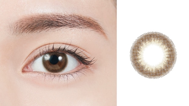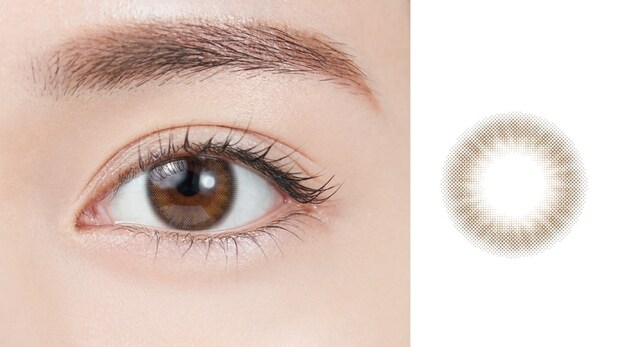 ハイライトカラーがくすみを飛ばして煌めく瞳に見せてくれるライトブラウン。フチは柔らかなグラデーションになっているので、着色直径大きめでも自然につけられる。[レンズ直径:14.2mm、着色直径:13.5mm]