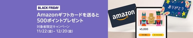 キャンペーン期間中、E mailタイプ・PDF印刷タイプのAmazonギフトカードを合計5,000円以上送ると、500ポイントがもらえました。