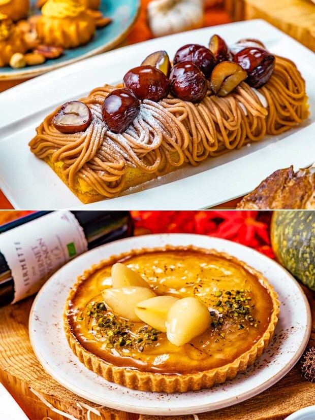 食後のデザートには、「洋ナシのタルト」や「モンブラン」、「パンプキンシュークリーム」、「紫芋のバウムクーヘン」など主役級のスイーツがずらりとラインナップ。時間無制限のメリットを活かして、食後少し休憩しながら全種類のスイーツを楽しんでみて。