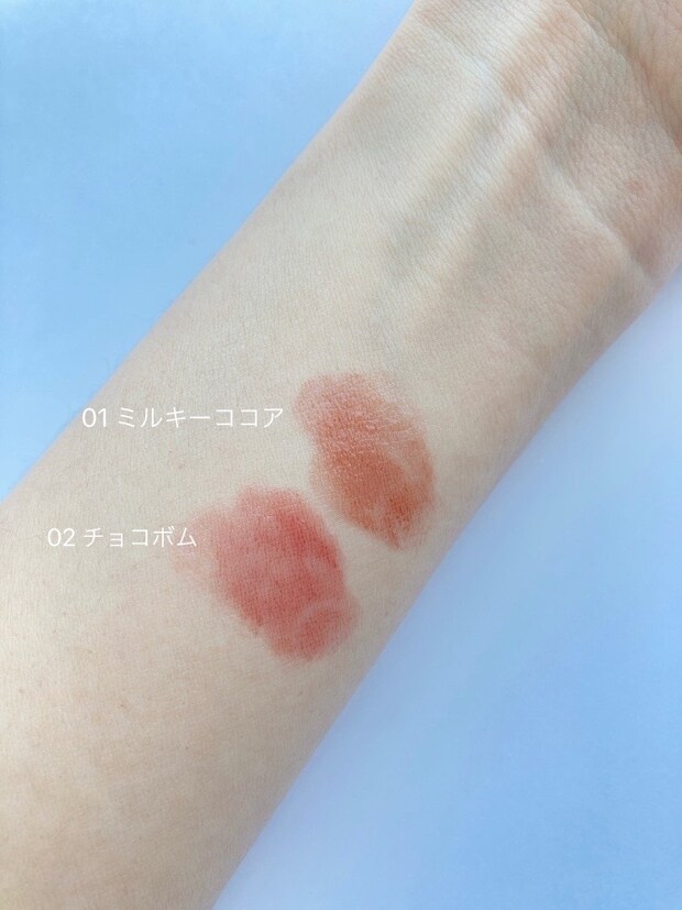 「トレンドのモチプルリップになれるティントです。バレンタインのチョコレートをイメージした2色展開で、私は赤みの強い02がお気に入り。万人受けするカラーだし、顔がパッと明るくなるんですよね。うるおうし、軽いつけ心地でデイリーユースにぴったり。塗りムラが気にならない程度のちょうどいい透明感もあって、何もかもがちょうどいいんですよね。少し取れやすいかなという気はしますけど、可愛いから全然オッケーです(笑)」とMちゃん。確かに、こちらミニバッグにもポケットにも入れやすいサイズ感で携帯性抜群です。Mちゃんは02のストロベリーがかったミルクチョコレート色推しでしたが、編集Kはココアカラーの01が40代女子のヌケ感カラーとしては抜群の使い心地なのではないかと推薦します。ほどよく血色感もアップしますし、何より浮かない。とはいえ、2色買っても2,000円でおつりがきますしね。気軽にカラバリ揃えるのが一番かもしれません!