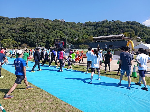 仲間と共に美しい芝生や松山城の景観に包まれて走る瞬間は、日常では味わえない開放感と達成感が広がります。