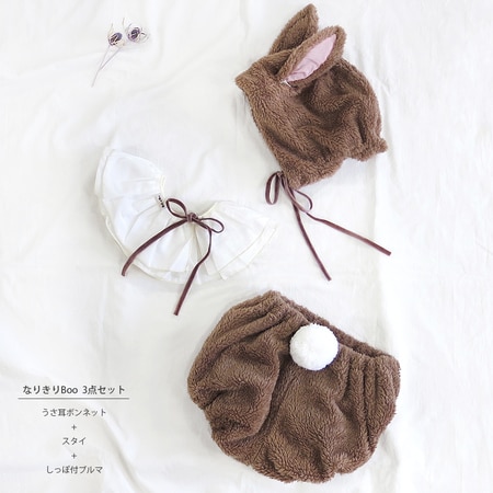 うさ耳ボンネット・つけ襟スタイ・しっぽ付きブルマの3点セットで、着替えの手間もなくあっという間にうさぎに変身できると好評だという。