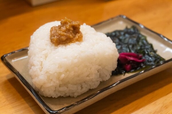 〆に食べたいのは、肉味噌おにぎり。