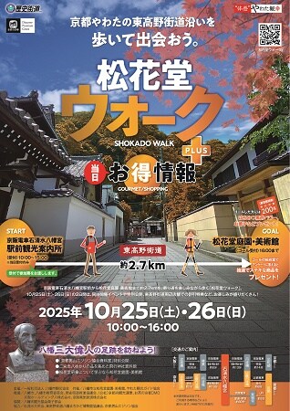 10月25日(土)・26日(日)に、京阪石清水八幡宮駅前から松花堂庭園・美術館まで東高野街道沿い約2.7kmを歩く「松花堂ウォークPLUS」が開催される。
