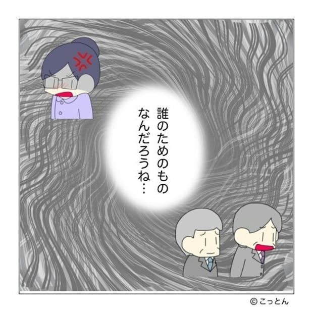他の役員の意見を聞かず「例年通り」と言い続けるべき子さんに対し、役員メンバーは波風立てないために反論しなくなっていきます。さらに、家庭の事情で役員会に遅刻した人にも厳しい言葉をかけ、周囲の人はどんどんべき子さんから離れていきます。
