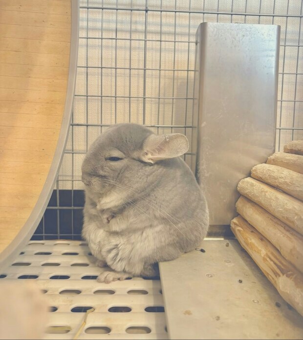 ゲージの段差に腰かけて…虚無顔のチンチラに12万いいね