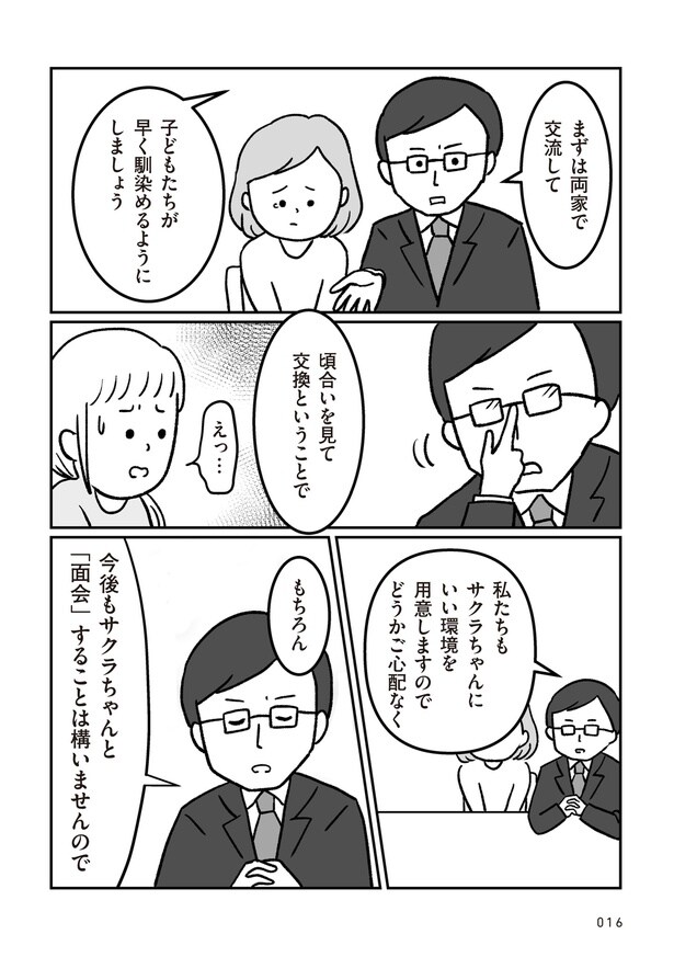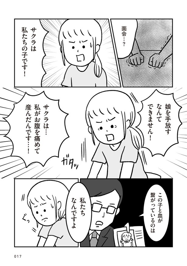 三橋サキは夫と長い不妊治療の末に授かった3歳の娘と平凡ながらも幸せな日々を送っていた。しかしある日、郵便受けに届いた一通の手紙によって、その幸せが一変する。その手紙は娘を出産した病院からのもので、不妊治療の際に受精卵を取り違えてしまった可能性が高いという内容だった。娘の本当の両親から、子供の交換を提案される三橋夫婦。サキは娘と血が繋がっていない事実にショックを受けながらも、自分が産み、3年間大切に育てた娘とは離れられるわけがないと拒否。しかし、夫は交換を受け入れる姿勢を見せて――?