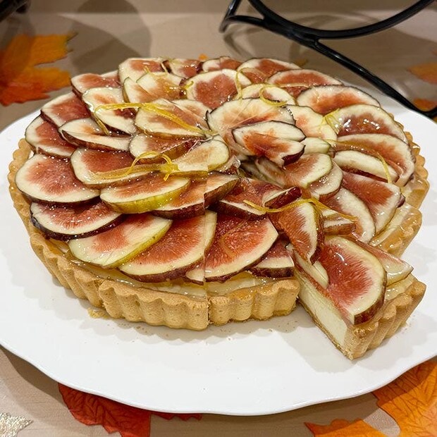 10月限定で提供される「いちじくのタルト」。いちじくが美しく並んでいて、秋の味覚を存分に楽しめるスイーツです。ちなみに、11月から12月は「洋梨のタルト」に変わるそうですよ。