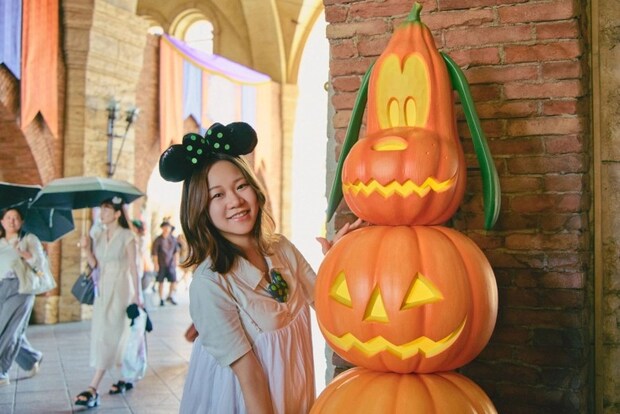 エントランスをくぐり奥に進むと、かぼちゃに変身したおなじみのキャラクターたちがお出迎えしてくれます。子どもと一緒に「ミッキーのかぼちゃを見つけてみよう!」なんてゲーム感覚で探してみるのも面白そうですね!