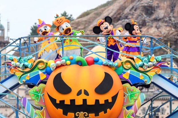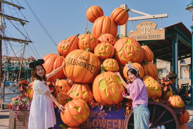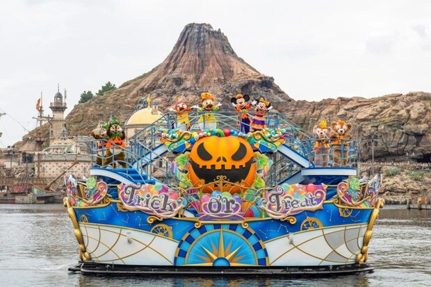 メディテレーニアンハーバーで開催される「ディズニー・ハロウィーン・グリーティング」では、かぼちゃカラーに身を包んだキャラクターたちが登場!大きなかぼちゃとお菓子をたっぷり載せた船で、ゲストたちにご挨拶しながら、ハーバーをぐるりと一周していきます♪