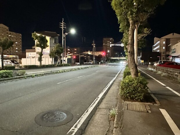 まっすぐ行くと大元駅があります。その先は「岡輝中学校」や岡南町交差点。