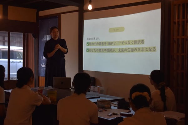 生徒たちは、企画が形になるまでの流れや、企画を考える際に最も重要なテーマの見つけ方、企画のフレームに関する説明、さらに、各媒体(紙・WEB・SNS)の特性に応じた発信内容の重要性を学んだ。