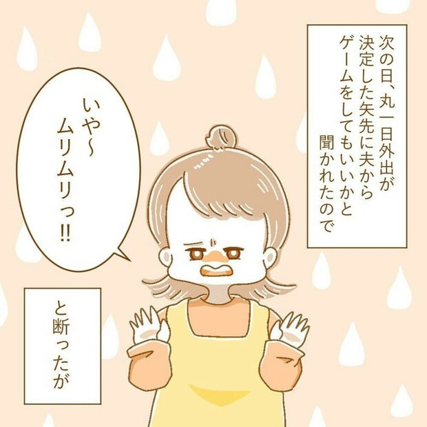 ツムママさんの悪い予感は的中。明日、丸一日外出する上に、今夜はゲームをするなんて…。新生児がいる家では、考えられない行動です。
