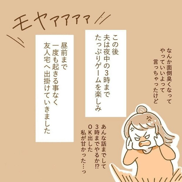 徐々に気持ちがすれ違っていく2人…。ツムママさんも面倒になってしまい、つい「ゲームしていいよ」と言ってしまいます。