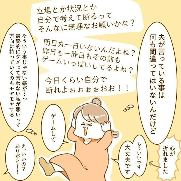 夫が言っていること、間違ってはいないのですが、どうしても屁理屈に感じてしまいます。「妻にダメと言われたからゲームをしない」では、ツムママさんの印象が悪くなってしまいますね。