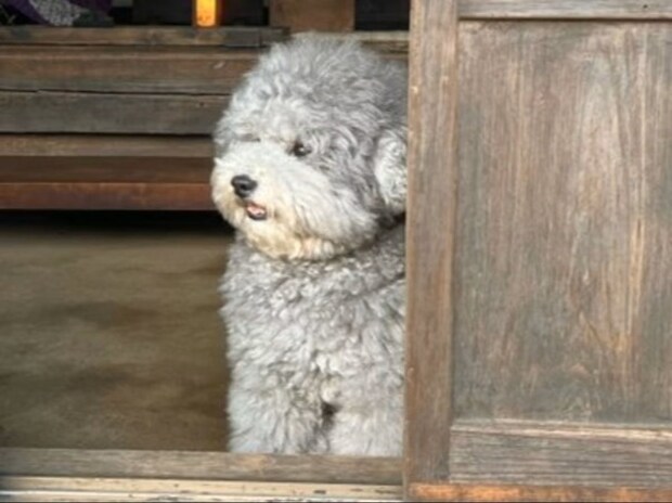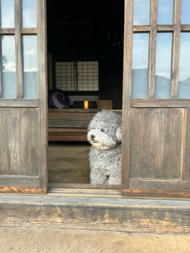 落ち着いた風情のある日本家屋の玄関を開けると、モフモフでかわいいワンコが。こんな光景、最高の癒やしですよね。ギュっと抱きしめたり、ナデナデしたり、モフモフの中に顔をうずめたいという衝動にかられそうです。