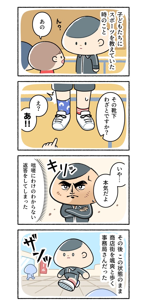 子どもたちにスポーツを教える事務局さんですが、足元を指摘されて……?