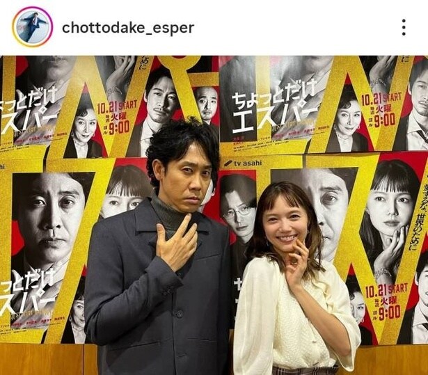 この日、公式Instagramは「ちょっとだけエスパー 今夜9時START 朝から電波ジャック中 大下容子ワイドスクランブルを前にお2人のオフショットをお届け もしかしてこのポーズ…」などのコメントとともに写真を投稿。大泉洋と宮崎あおいが、背景のポスターと同じポーズをするお茶目な写真を公開。