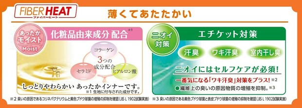 あったかモイストインナー同様に、今年は新たに「ワキ汗臭」対策をプラスし、ニオイ対策が進化しています。環境に優しいオーガニックコットンを使用。