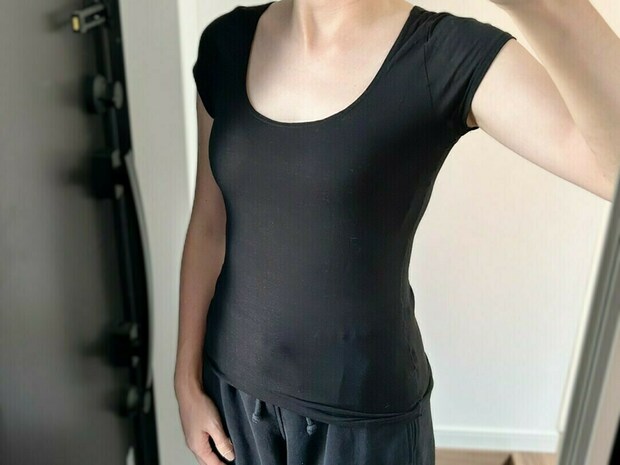 さらに、抗菌防臭機能や部屋干し臭軽減機能も備わっており、汗対策や洗濯の悩みも軽減。伸縮性の高い薄手の生地は、体の動きに程よくフィットし、窮屈感なく快適な着心地です。