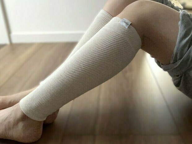 こちらは「夜ヘルシー 快眠レッグウェア」。眠眠ラボ・Dr.Schollとの共同開発の本格派!人気インフルエンサーMUMUさんとのコラボ品でもあります!40cmのショート丈