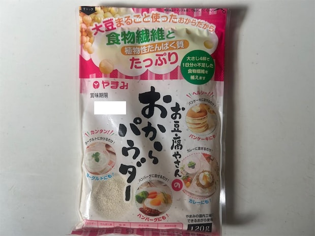 おからパウダーは、生のおからを乾燥させて粉末状にしたもので、スーパーや100円均一ショップなどで購入出来ます。