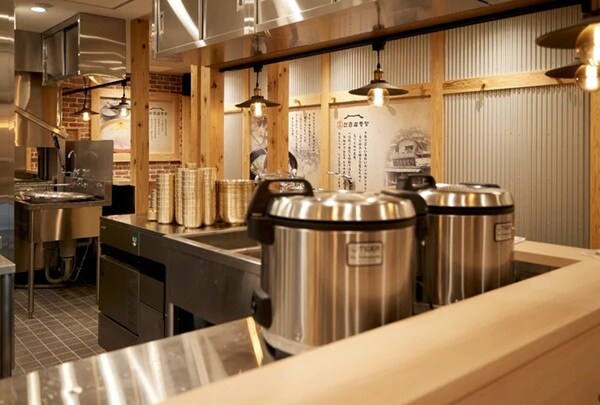 新大久保駅徒歩1分の場所にオープンする「シンチョン ソルロンタン 2号店」は、カウンター席を中心に設計。厨房から直接スープをよそい、できたてをそのまま提供することで、提供時間の短縮と温度ロスの軽減を実現した。