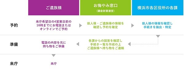 横浜市で10月に「お悔やみ窓口」が開設されたのは、神奈川区、中区、港南区、磯子区、金沢区、緑区、青葉区、戸塚区。10月8日(水)から予約を受け、10月15日(水)から対応を開始している。