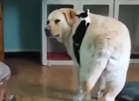 突然何かが乗っかってきた犬さんは