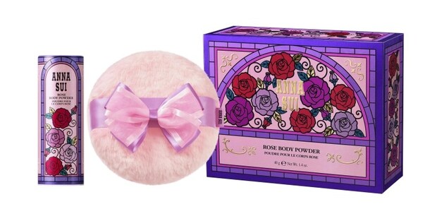 「アナ スイ ローズ ボディパウダー」は美容成分入りのオイルパウダー。肌なじみよくしっとりと仕上がります。お風呂上がりだけでなく、お出かけ前の肌を保湿するのにもおすすめ。直径17cmもある毛足の長いふかふかとした大きなパフがついていて、まるで香りのドレスをまとうような感覚で塗布できますよ。ベースに配合された透明感のあるパウダーや極小パールの演出効果で、つるんとした輝く肌に。ティーローズの香りが漂い、絶え間なくリッチな気分で一日が過ごせます。