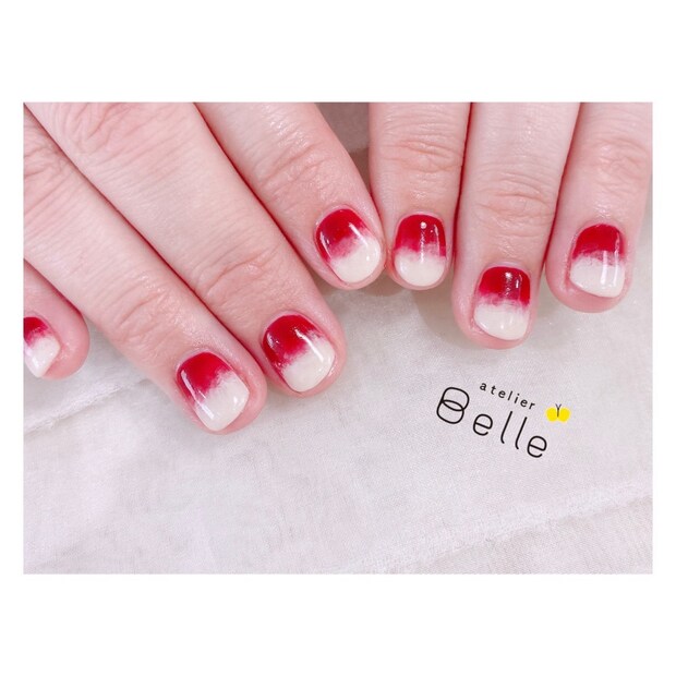 爪の根元に乗せたレッドが新鮮!グラデーションネイルを楽しもう!