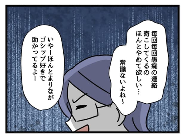 それぞれ立場や考え方が異なると、抱えている思いも違いますね。グチを言うと、さらにグチは広がるもの。女同士の、ちょっとした闇を感じるお話でした。