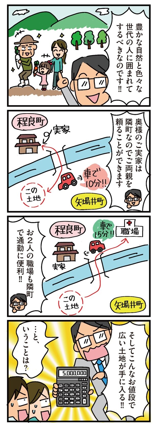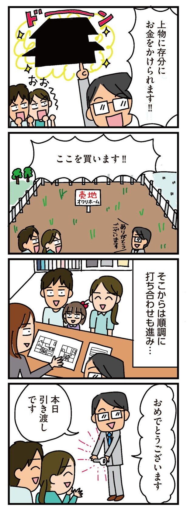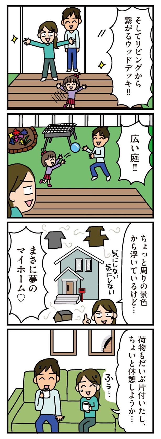 前回、家を買う決断をした新庄家。住宅展示場の営業担当から格安の土地を勧められて、実家や職場とのアクセスが良いことと注文住宅にお金をかけられるようになることから購入を決意。理想的なマイホームを手に入れたのだが…?