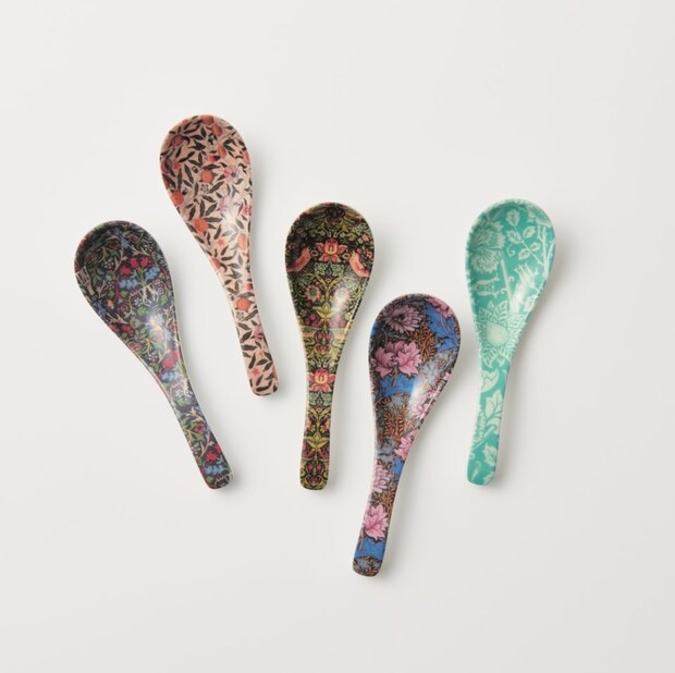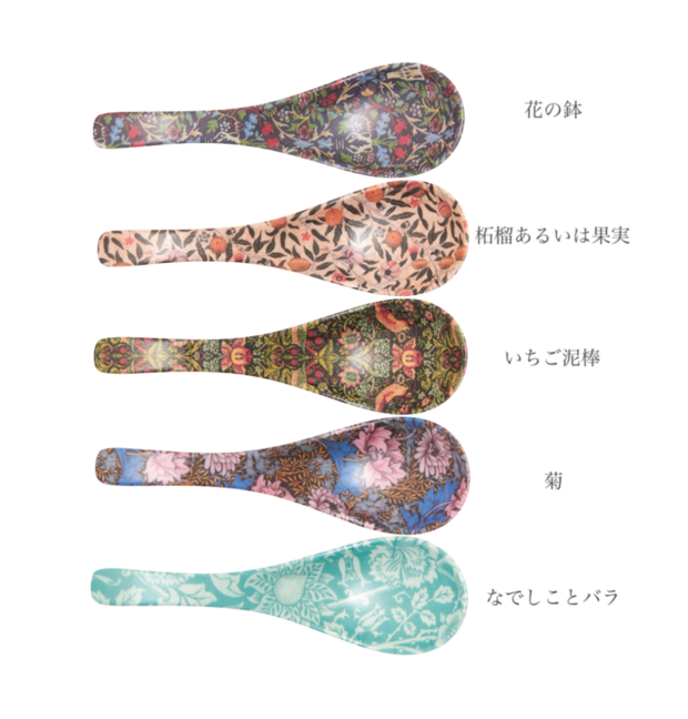増刊の付録は、ウィリアム・モリスの人気柄を集めたレンゲスプーン5本。一般的なレンゲよりも浅く滑らかなカーブで、扱いやすさも◎。汁物やお鍋、丼物、スイーツなど、幅広いメニューで活躍します。食卓が華やぐこと間違いナシ!
