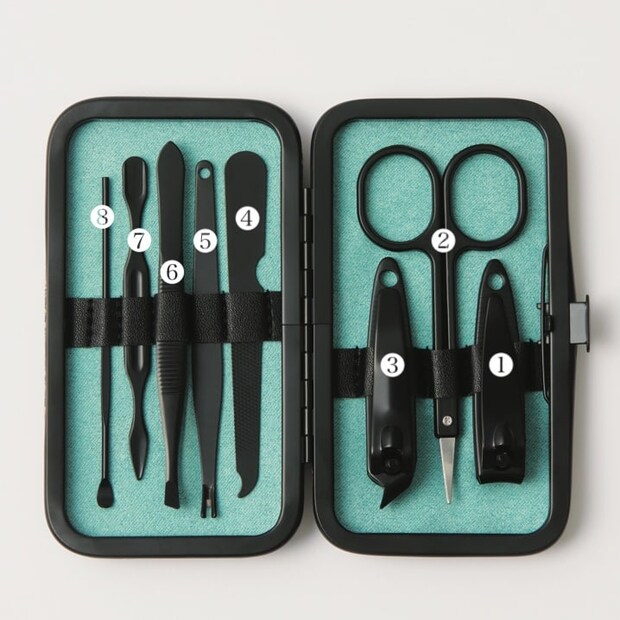 【セット内容】❶爪切り❷ハサミ❸巻き爪用爪切り❹爪ヤスリ❺甘皮カッター❻毛抜き❼甘皮プッシャー❽耳かき